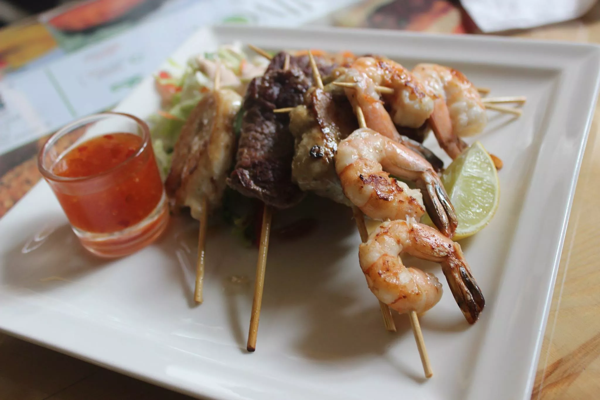 الوجبات الرئيسية التي نقدم الدجاج واللحم المشوي والمطبوخ مع أرز الكبسة والبهارات التي تضفي مذاق وطعم مميز وتشكيلة من المشاوي العربية والكباب والشيش طاووق مع الخضار المشوية والأرز والكفتة وأنواع عديدة من المعكرونة بالبشاميل والخضار.